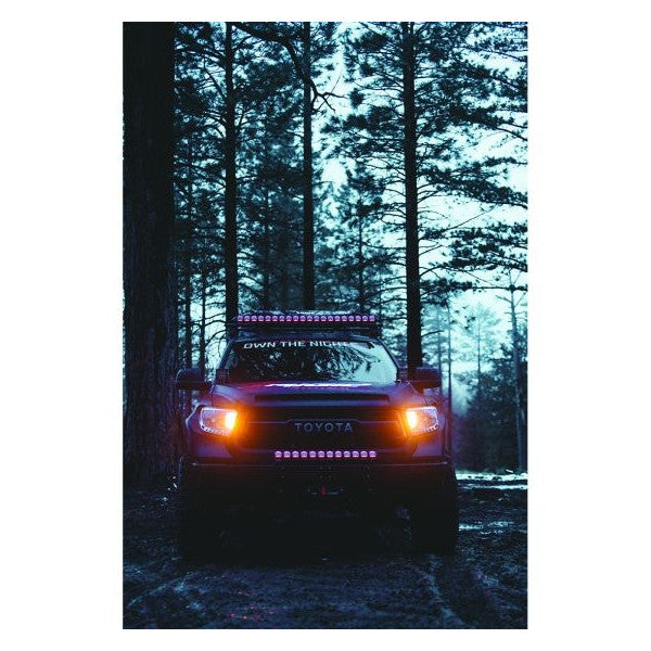 The RIGID Adapt LED light bar has a signature look that is unlike any other light bar on the market. Feature packed with the most advanced patented technology, this light bar has eight selectable beam patterns and accent lighting that can be programmed to display any color in the light spectrum. The Adapt features integrated optics design with Spot, Flood and Driving zones. Horizontal beam patterns range from 90-degree slow or moderate speed broad beam to a highly focused 15-degree high-speed spot beam in a single fixture. It also includes RIGID's Active View Technology, which allows the beam pattern to automatically adjust based on the vehicles speed when set to adaptive mode. The Adapt Light Bar has expanded mounting capabilities to include traditional side mounting or underside low-profile stealth mounting. The dash mounted controller is a molded backlit unit with two programmable presents and that intuitively controls the Adapt Light Bar's beam patterns, adaptive mode, accent lighting. The Adapt Light Bar is available in 10-inch, 20-inch, 30-inch, 40-inch, and 50-inch lengths. The kit includes one light, a GPS module, a dash controller, an under dash module, a complete wiring harness, a switch, mounting hardware and installation guide. The RIGID Adapt makes it easier than ever to Own The Night.