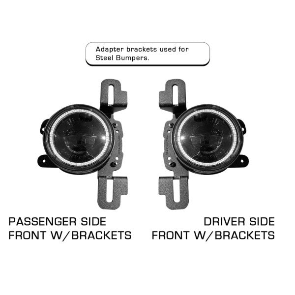 - TECH SPECS. Compatible with steel bumpered Wrangler vehicles. Package includes: (2) Adapter Brackets. (1) Mounting Gear. Part # 5857-504 [LED Fog Lights Sold Seperately]
