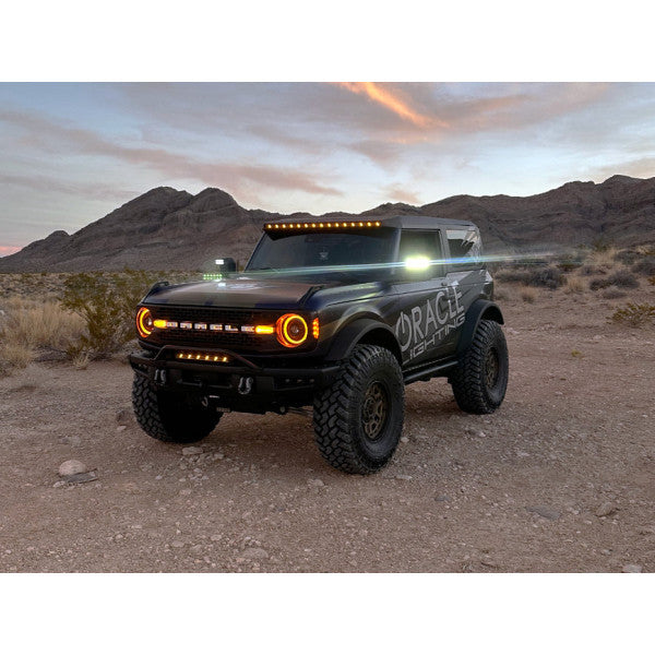 Enhance your visibility on the trail with the Oracle Lighting LED Off-Road Side Mirror Ditch Lights, specifically designed for the 2021–2023 Ford Bronco. These innovative ditch lights are integrated directly into the factory mirror housings, offering a sleek, low-profile solution that’s both functional and stylish. Unlike bulky external pod lights, this system blends into the OEM mirrors while delivering powerful side-facing illumination. Ideal for spotting obstacles or lighting up your camp area, the lights feature a wide beam angle, durable construction, and plug-and-play wiring for easy installation. Key Features • Integrated LED Design Built into the factory side mirror housings for a stealthy OEM+ appearance. • Wide-Angle Side Illumination Perfect for trail spotting, camp lighting, or ditch coverage, offering improved lateral visibility. • Vehicle-Specific Fitment Custom-engineered for the 2021–2023 Ford Bronco (excludes Bronco Sport). • Durable Off-Road Construction Impact-resistant housing and sealed LEDs are built to handle dust, moisture, and trail abuse. • Simple Installation Comes with mounting hardware and plug-and-play wiring for a hassle-free upgrade. • Optional Backlight Feature Some versions may include a white or amber DRL-style backlight for added functionality and appearance Specifications • Vehicle Fitment: Ford Bronco (2021–2023) • LED Type: High-output side-mounted LEDs • Beam Pattern: Wide-angle lateral projection • Material: Reinforced ABS or aluminum housing (depending on variant) • Water Resistance: IP-rated for outdoor use • Wiring: Plug-and-play harness with switch (may vary by kit) • Included: o LED-equipped mirror housings or add-ons o Wiring harness o Switch or integration cables o Installation instructions All items purchased prior to 1 June 2025 have a 6-year warranty