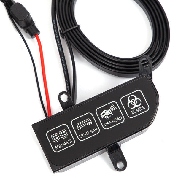 Q: How many devices can this switch pod kit control? A: The switch pod kit can control up to 4 devices, making it ideal for managing multiple accessories like LED light bars and spotlights.