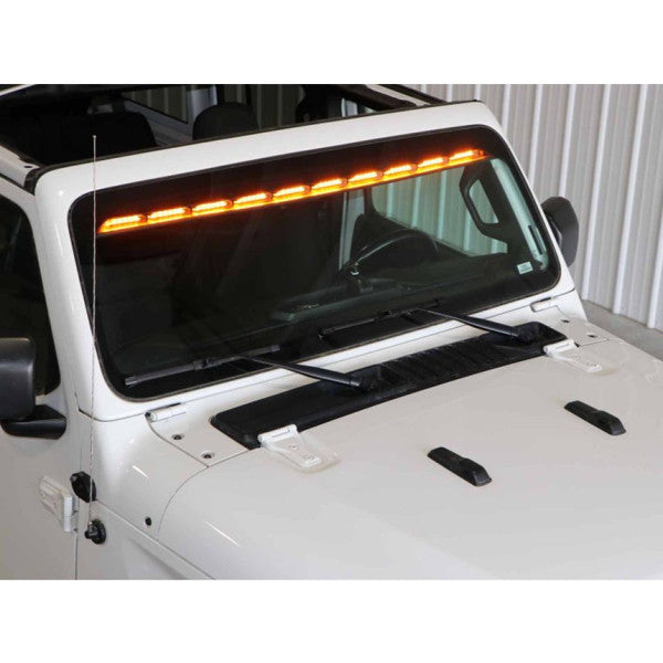 A: The light bar is mounted inside the windshield, eliminating exterior drag and wind noise associated with exterior-mounted light bars.