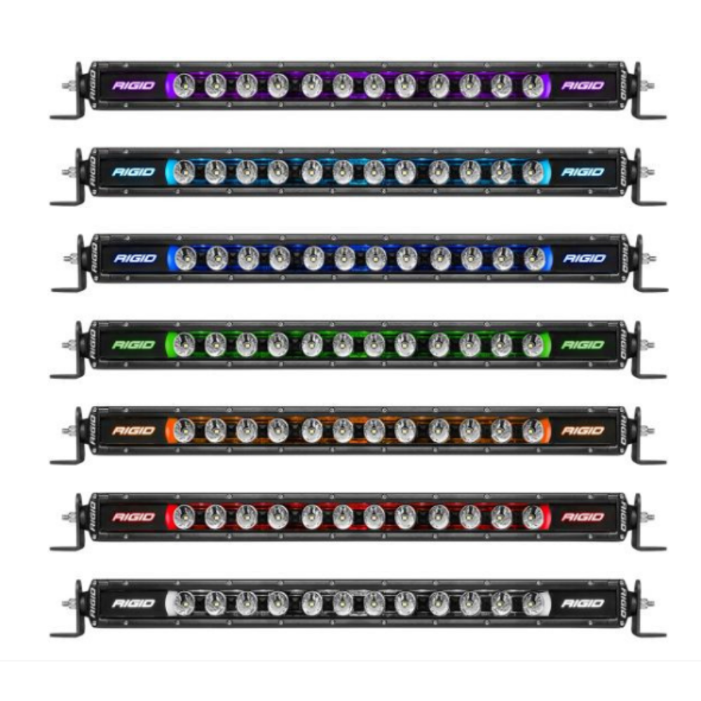 The RIGID Radiance Plus SR-Series single row LED light bar is the perfect solution for those who want RIGID's legendary quality at a level everyone can attain. Utilizing RIGID's LED technology, the Radiance Plus light bars feature the same superior build quality as the rest of RIGID's lighting products, providing reliable and efficient lighting on demand. The Radiance Plus SR-Series LED light bars are built with the same sleek low-profile high-grade aluminum alloy housing as the legendary SR-Series, but that's where the visual similarities end. Inside, the Radiance SR-Series is feature-packed, with a black exposed circuit board, optimized forward projecting Broad Spot optics, prominent RIGID branding plates, and RGB LEDs that provide the user with the ability to toggle between eight available back light options with the flip of a switch: Red, Green, Blue, Light Blue, Purple, Amber, White or Rotating. Available in 10, 20, 30, 40 and 50 inch lengths, and fits all existing SR-Series mounting options. The RIGID Radiance Plus SR-Series light bar is for the customer who wants a truly custom look, making it easier than ever to Own The Night.